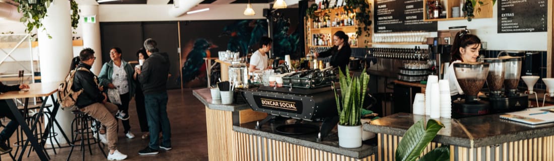 Situé le long du front de mer dynamique de Toronto sur le quai Queen, à quelques pas de gare Union, Boxcar Social allie habilement le café Subtext Coffee Roasters torréfié à la perfection avec un large menu comprenant le brunch, le vin et des cocktails. Dans un cadre spacieux et axé sur la conception, c’est parfait pour des rassemblements sociaux ou des visites de travail en solo. Ce célèbre café et bar multi-torréfacteur de Toronto se concentre sur le café de qualité, et les vues sur le front de mer en font un incontournable pour les passagers de l’UP Express allant et venant de la gare Union de Toronto!